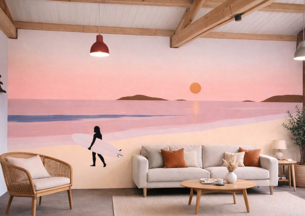 J’accompagne particuliers et professionnels dans la transformation de leurs lieux grâce à des fresques murales sur mesure, imaginées pour révéler l’identité et l’atmosphère de chaque espace.